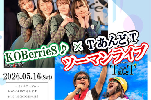 『KOBerrieS♪ × TあんどT ツーマンライブ』開催!! 日付:2026年5月16日(土) 時間:14 […]