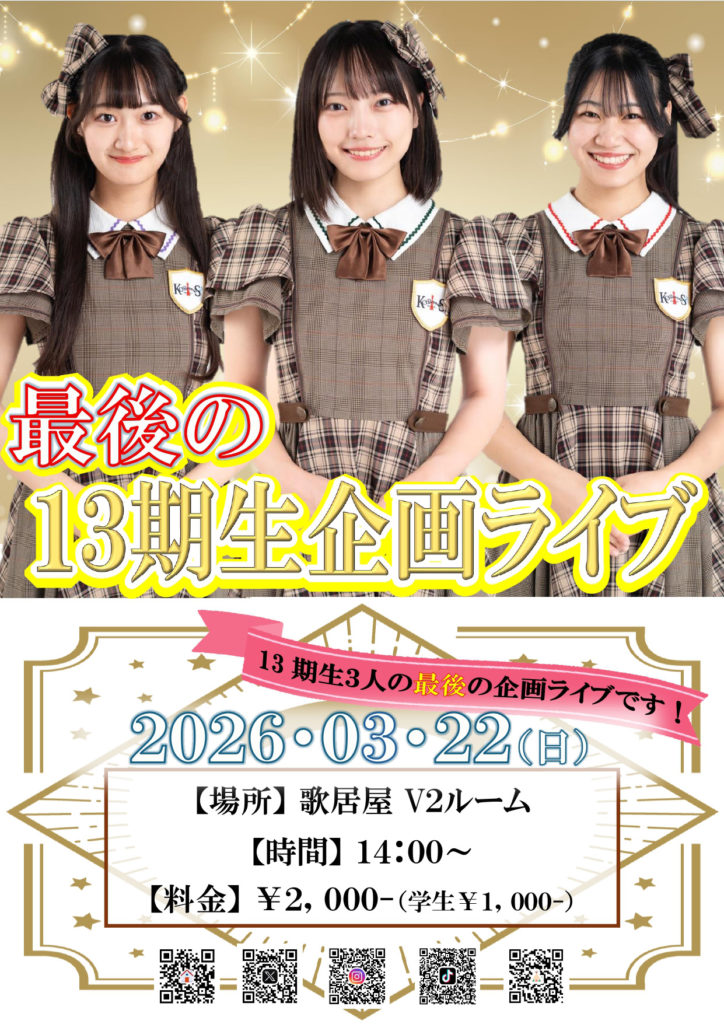 3/22(日)『最後の13期生企画ライブ』開催!!
